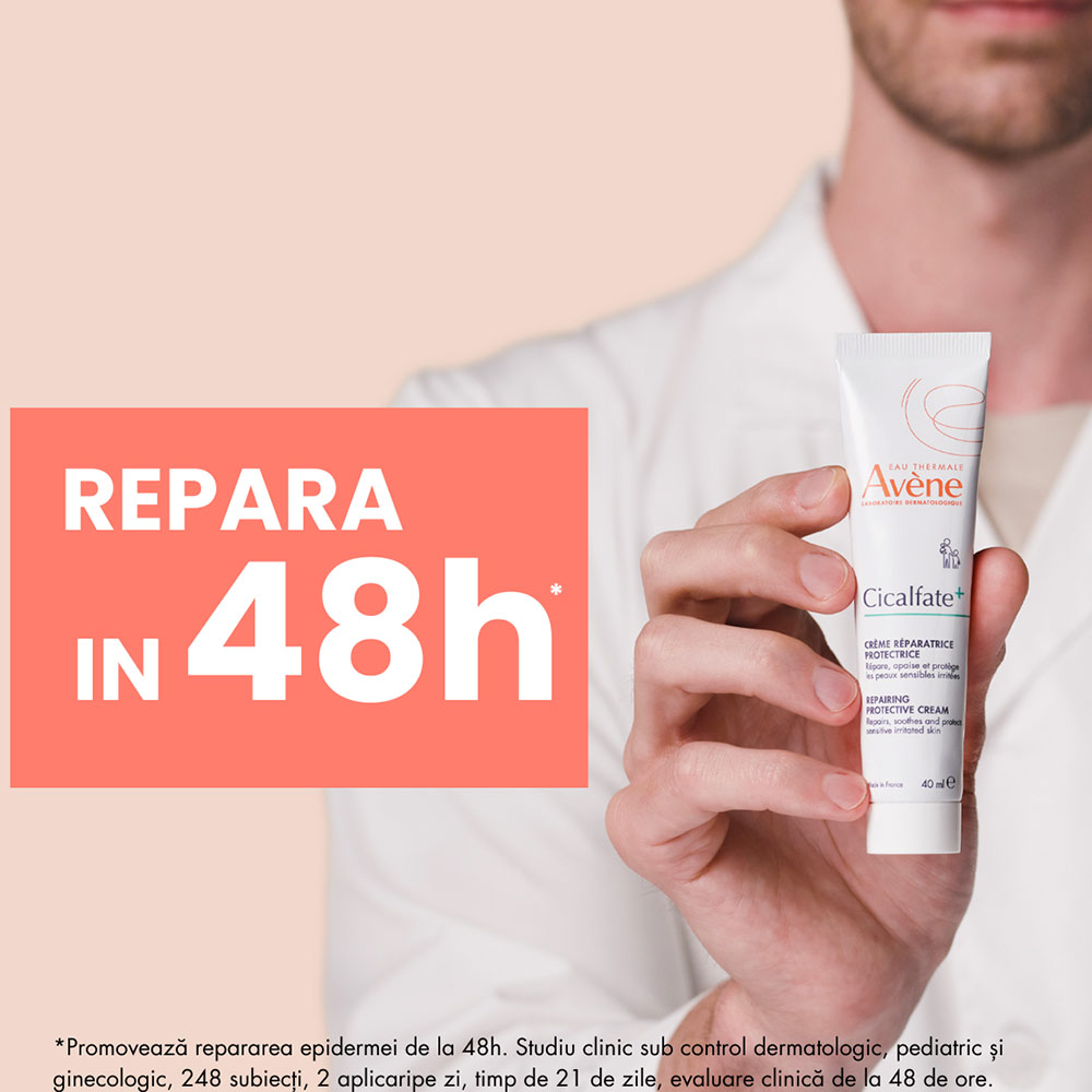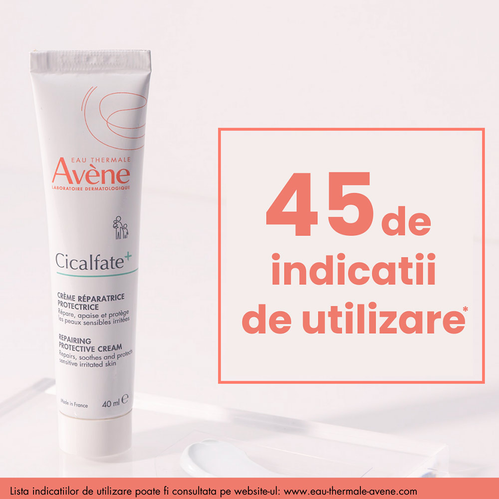 Calmeaza, protejeaza si favorizeaza repararea* pielii iritate pentru intreaga familie. Formeaza o pelicula protectoare la nivelul iritatiilor straturilor superficiale ale epidermei si creeaza un efect de „pansament” care protejeaza pielea. Formula sa contine o combinatie de apa termala Avène, ingredientul [C⁺-Restore]™reparator si ingrediente purificatoare: sulfat de cupru si sulfat de zinc. Cicalfate+ crema este potrivita si pentru zonele intime externe.