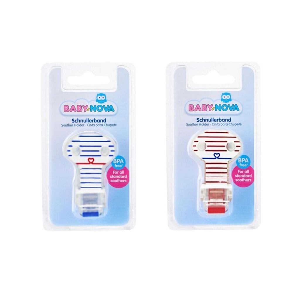 Banda colorata cu inel penru suzeta ovala, fara bisfenol A, este potrivita pentru toate suzetele standard. Este dotata cu clips oval, pentru a fi atasat de hainele copilului (grosimea materialului de maximum 3mm). Cu ajutorul benzii, suzeta este intodeauna la indemana celui mic.