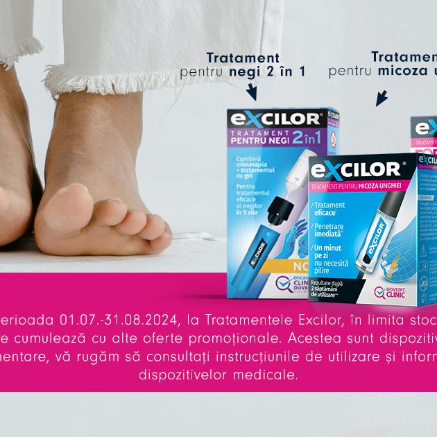 Până pe 31 august ai reducere de 25% la tratamentele Excilor pentru negi sau pentru micoza unghiei.