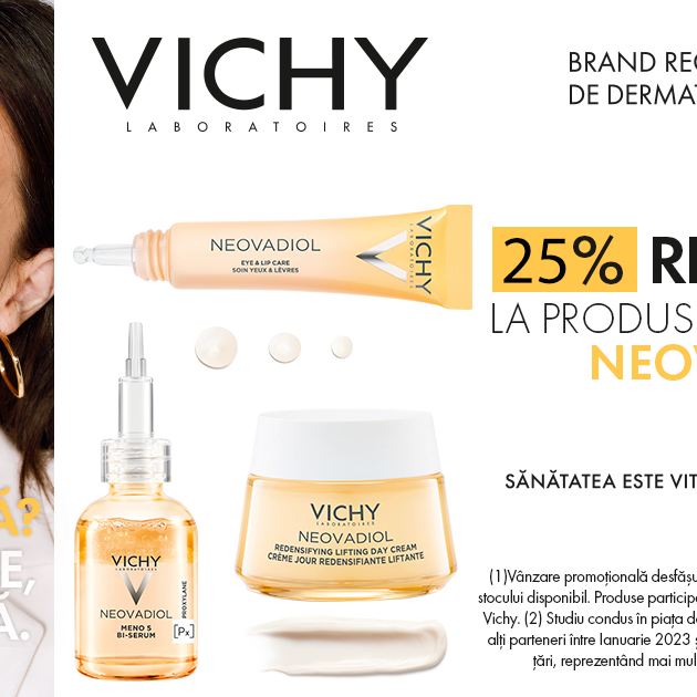 Îngrijirea pielii tale începe cu Neovadiol! Acum beneficiezi de 25% reducere la produsele din gama Neovadiol, special concepute pentru a sprijini fermitatea și hidratarea pielii, în special în perioadele de schimbare hormonală.