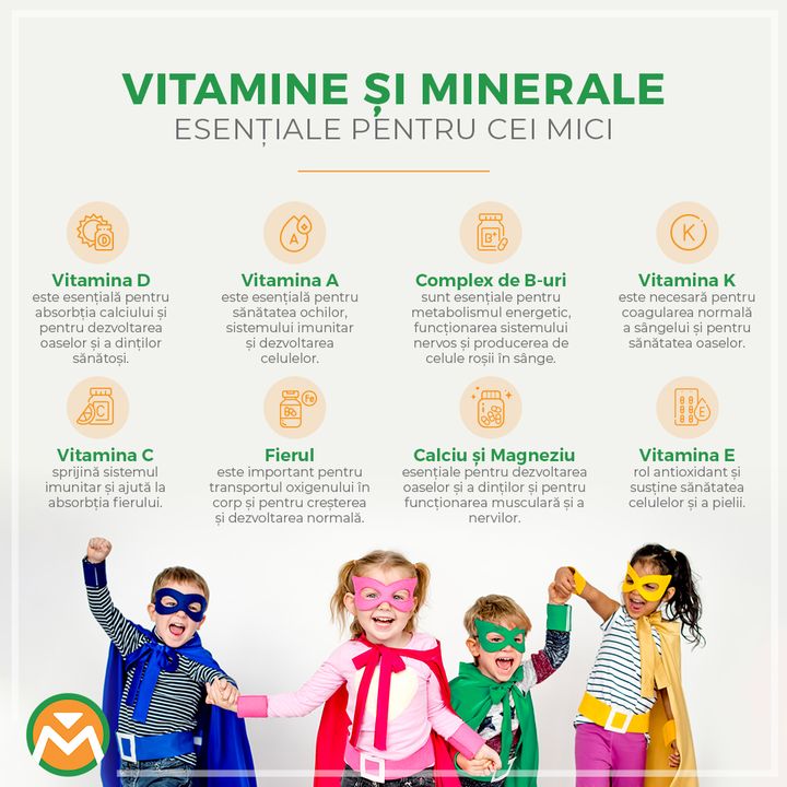 🔋Calciu și magneziu - esențiale pentru dezvoltarea oaselor și a dinților, dar și pentru funcționarea musculară și a nervilor;