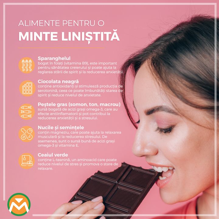 Există câteva alimente și nutrienți care au fost asociate cu reducerea simptomelor anxietății sau cu îmbunătățirea stării generale de bine. Iată câteva exemple: