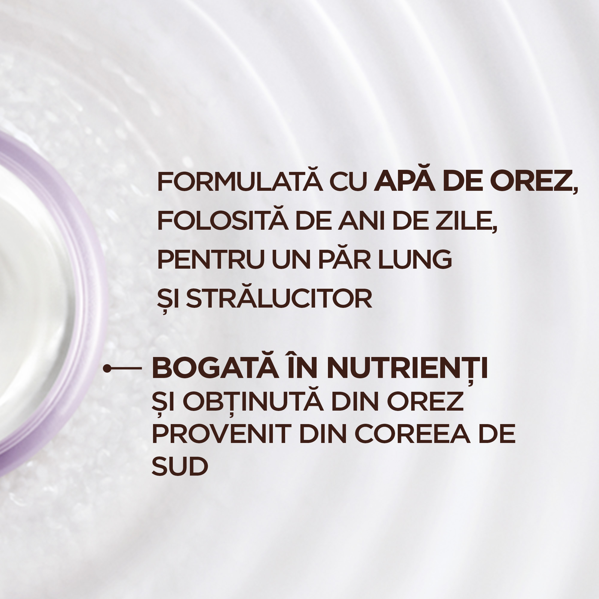 Noua gama imbogatita cu apa de orez si amidon catifeleaza si hidrateaza parul lung pentru a ii oferi stralucire. Fibra capilara este hidratata la interior si protejata la exterior, rezultatul: 72H de stralucire si catifelare*. *Test instrumental, dupa aplicarea samponului si balsamului din gama sau a mastii.